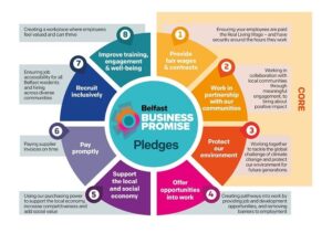 The Belfast Business Promise is an innovative accreditation that recognises employers who lead the way in corporate responsibility and social value. Open to all Belfast-based employers, the initiative encourages businesses to demonstrate their commitment to positive change through eight key pledges: